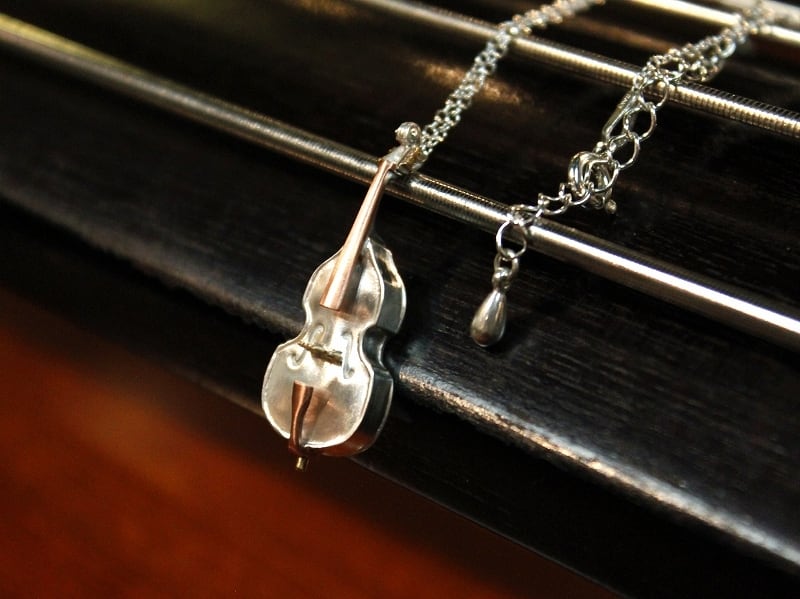 コントラバスをモチーフにしたネックレスです。