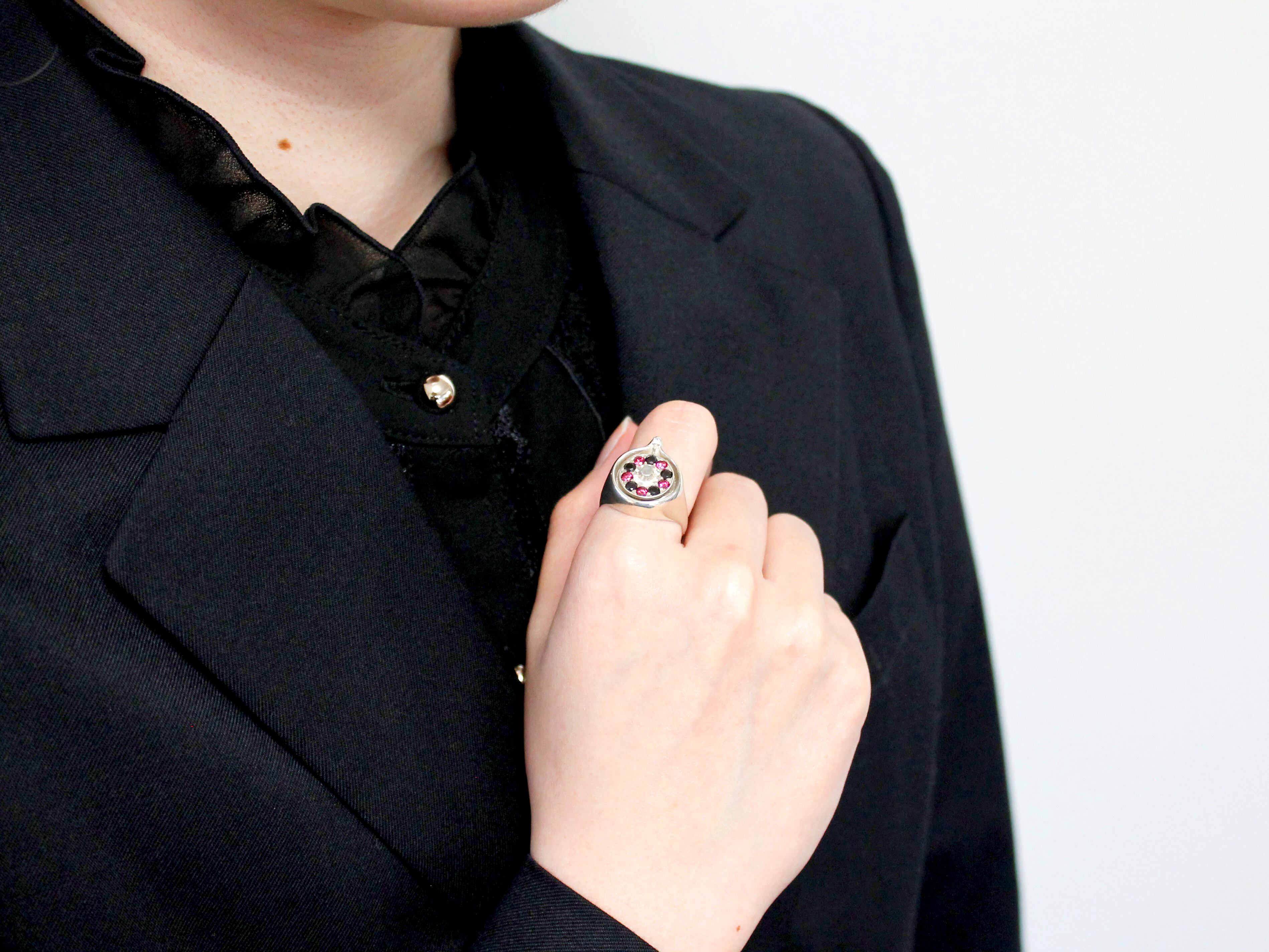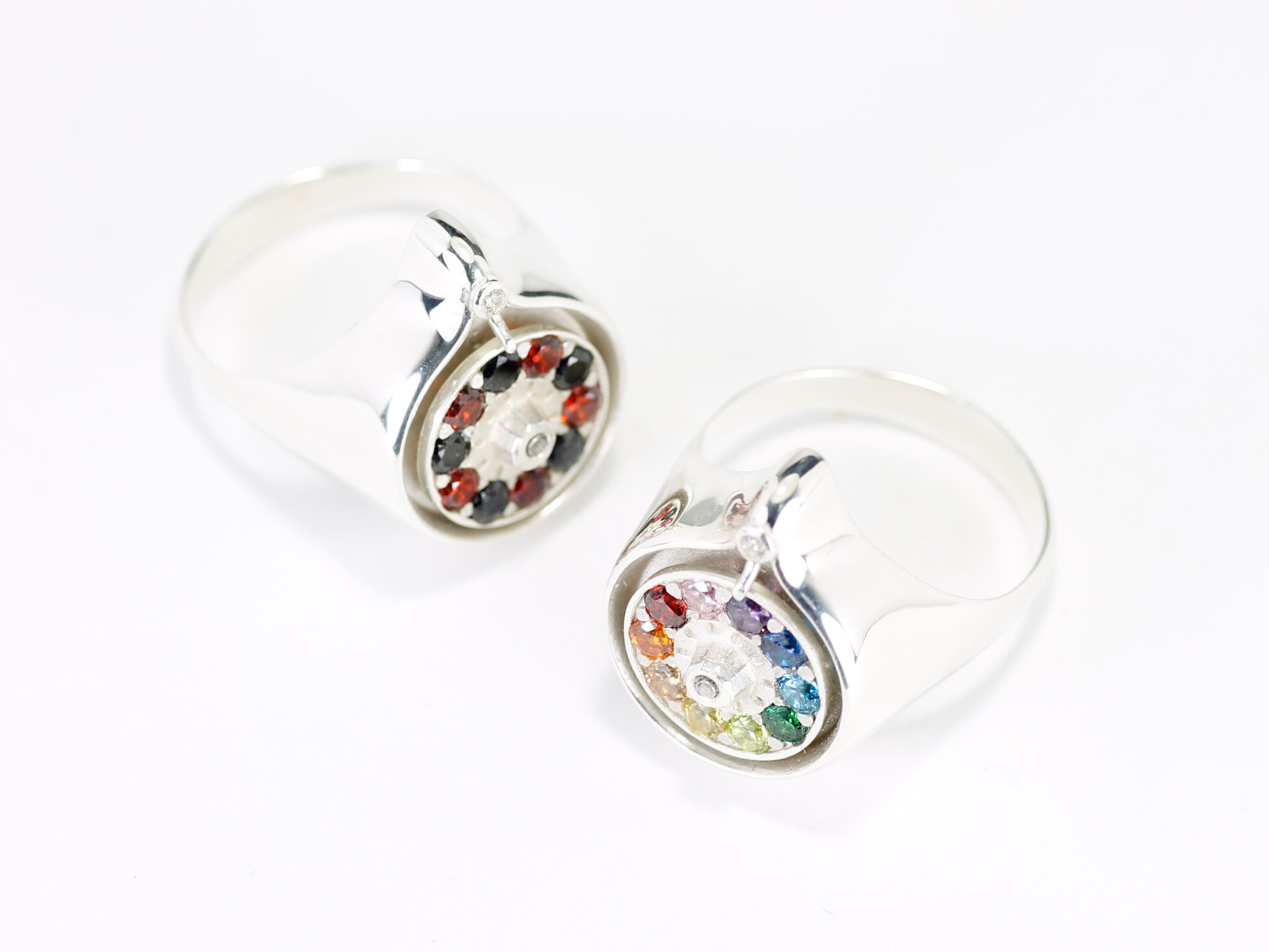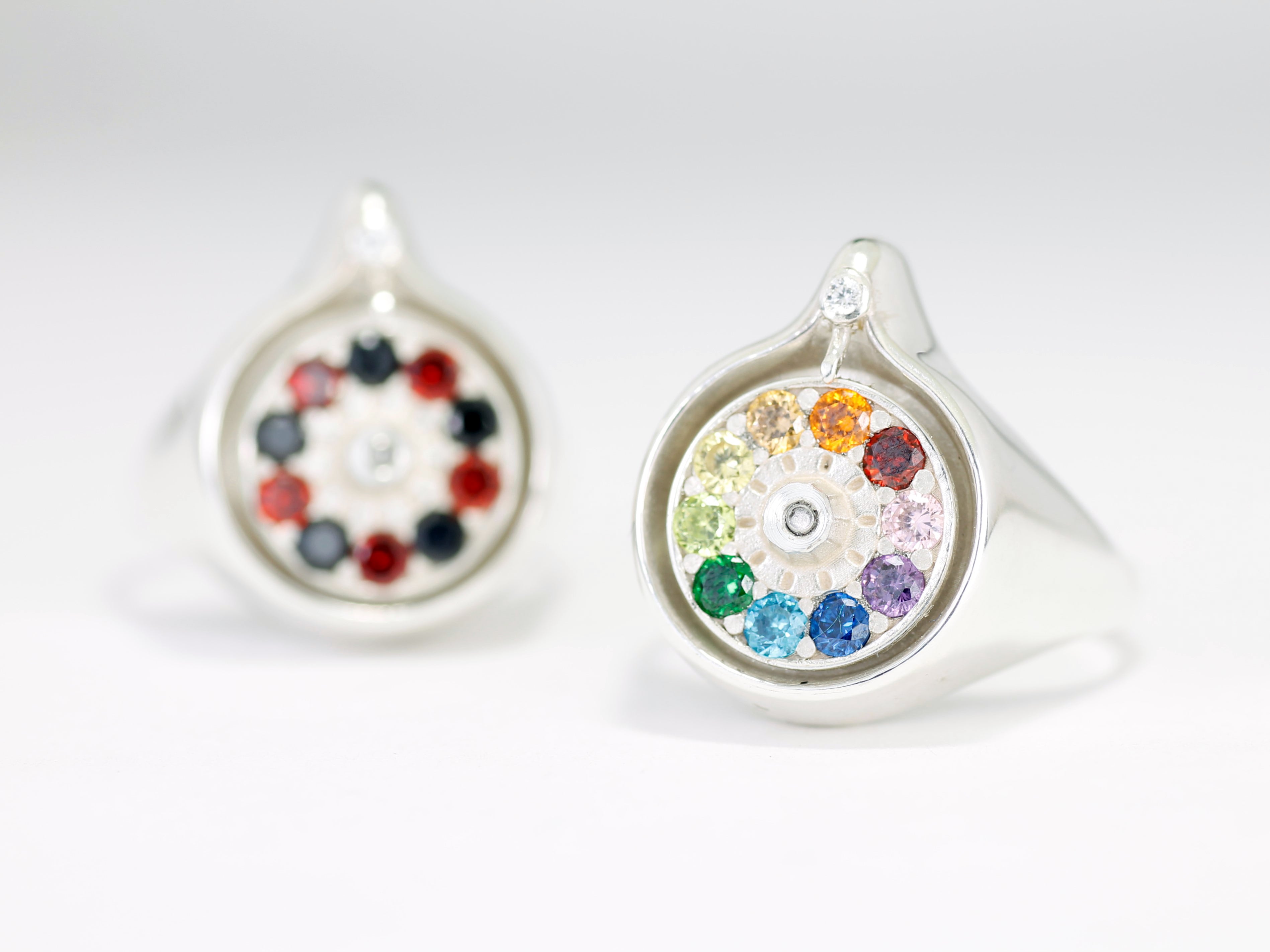 ジルコニアをあしらった円盤は、印台の上で滑らかに回転させることができます。
