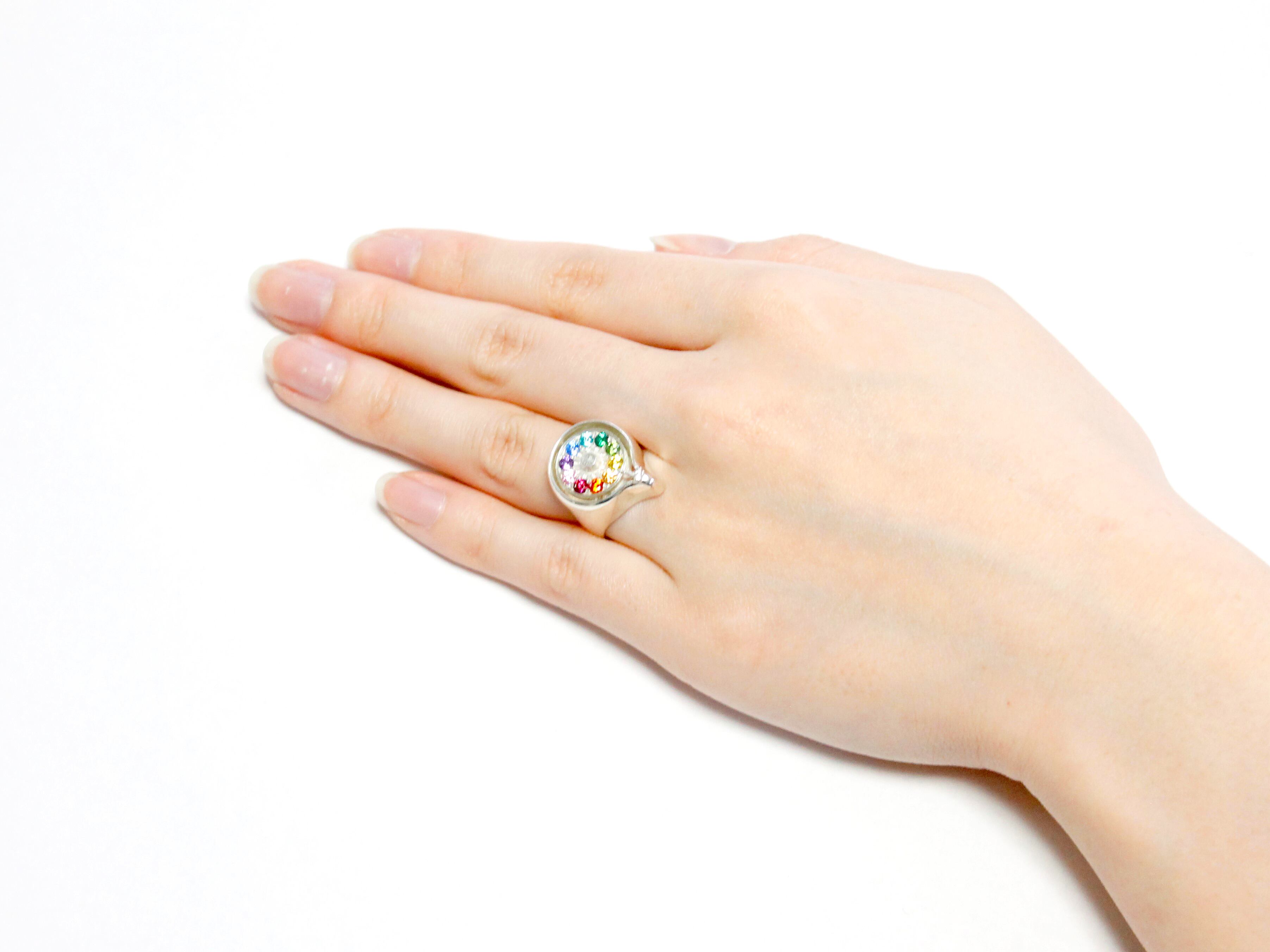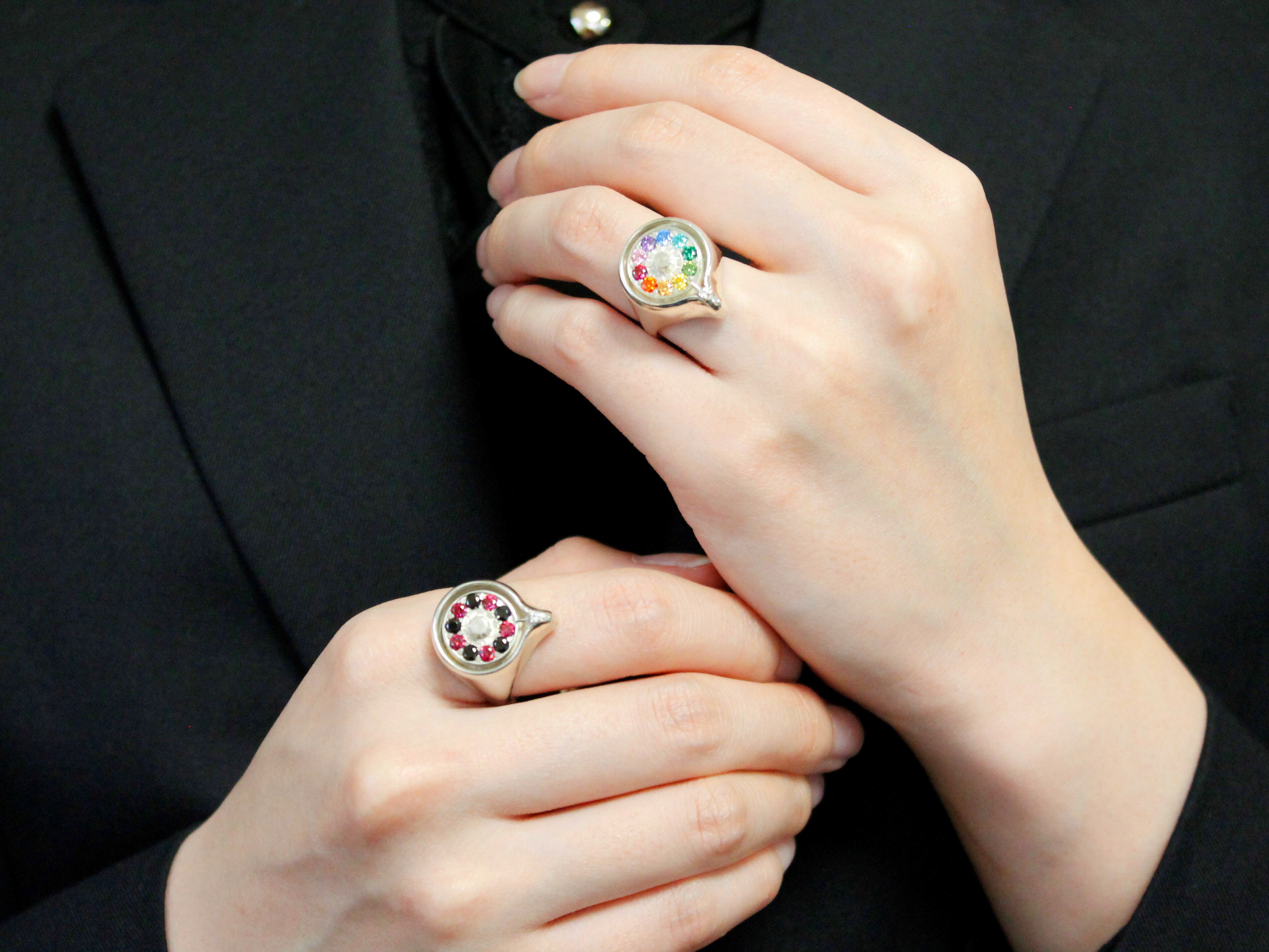 指輪の中に組み込んだ小さなベアリングが滑らかな回転を実現させています。